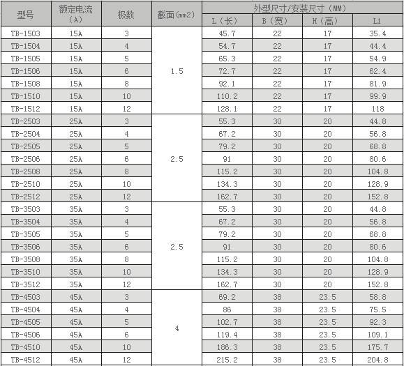 TB系列是采用板式螺釘壓接低座封閉整體式結(jié)構(gòu)額定電壓 600V,額定電流分為,15A,25A,35A,45A,60A,100A,6種規(guī)格