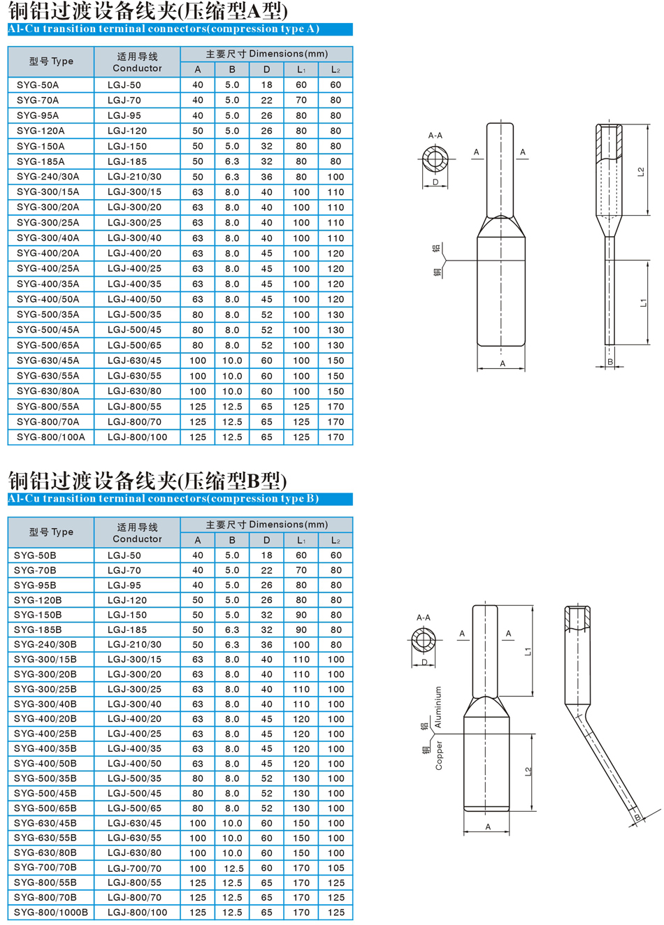 壓縮型銅鋁過渡設備線夾(SYG) |