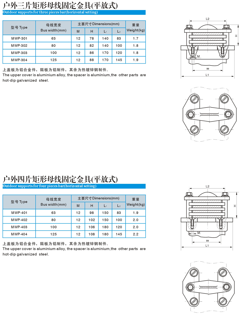 戶內(nèi)矩型母線固定金具(平放式)(MWP)