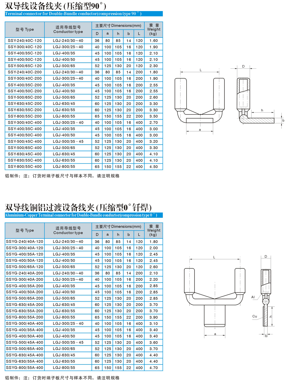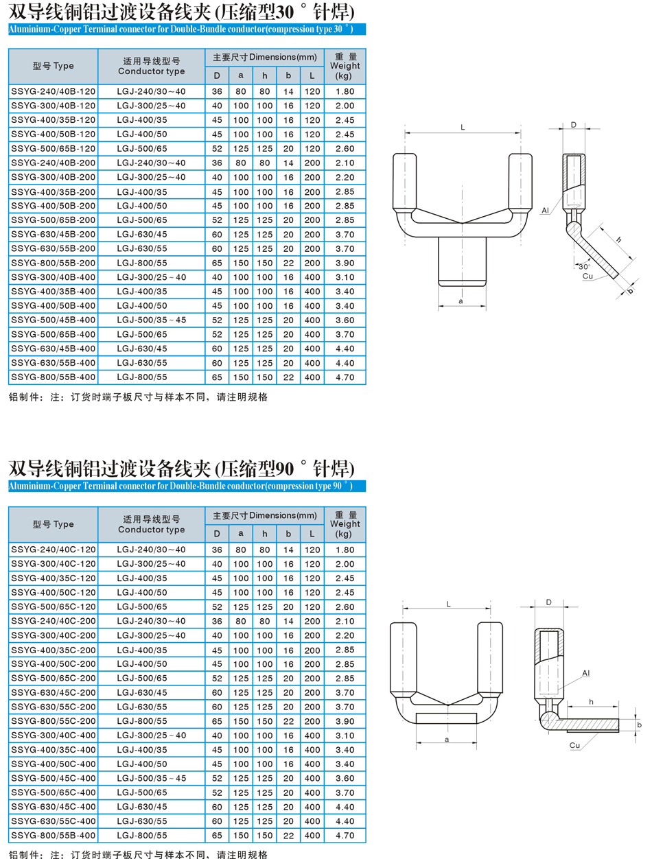 壓縮型雙導(dǎo)線銅鋁過渡設(shè)備線夾(SSYG)