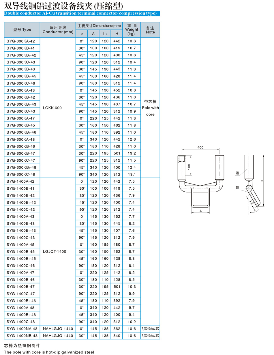壓縮型雙導(dǎo)線銅鋁過渡設(shè)備線夾(SYG)