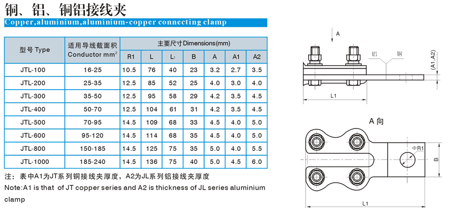 銅、鋁、銅鋁接線夾(JT、JL、JTL)