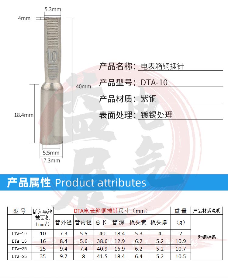 | 品名:電表空開(kāi)用銅插針,銅鋁插針