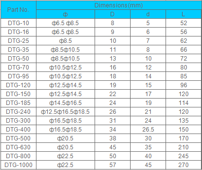 DTG管壓銅線鼻子,采用T2紫銅管退火后沖壓而成,導(dǎo)電性好,容易壓接,適用于低壓,高壓。